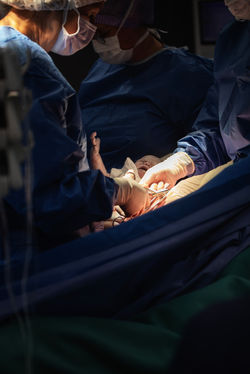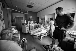 Toen ik na het zetten van de ruggenprik niet goed werd, en wegviel, mondde de keizersnede van mijn dromen plots uit in een spoedkeizersnede. Ik kom een beetje bij, en merk op dat de operatie al in volle gang is en Sander er nog niet is. Ik vraag naar hem, het is een fijne gedachte dat hij samen met de verpleegkundige en Jay is. Zij zien dat de operatie al bezig is, en weten niet precies wat er aan de hand is.
