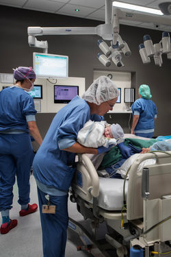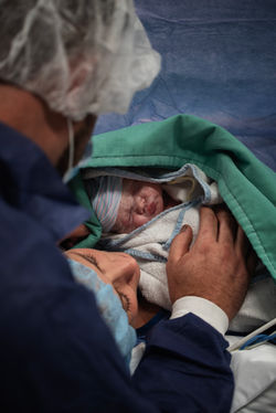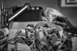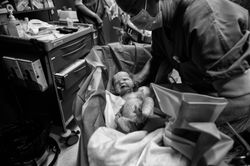 Vlak voordat Izzy-Mae uit mijn buik gehaald wordt, ben ik ietwat gestabiliseerd en mogen Sander en Jay naar binnen. Jay legt vast hoe Izzy met spoed en grof geweld uit mijn buik gehaald wordt. Met een vacuümpomp en het nodige duw- en trekwerk.